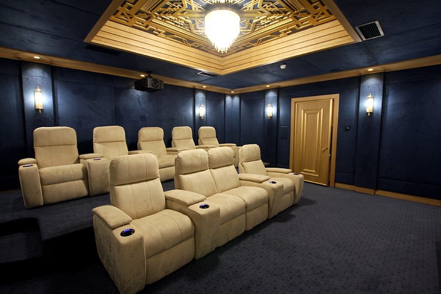 Завершилась работа над проектом частного домашнего кинозала в Раздорах в помещение площадью 47 м2 на цокольном этаже загородного дома. Роскошный интерьер, четкие линии, строгая геометрия орнаментов. Девять кресел-реклайнеров серии Derby, второй ряд которых установлен на подиум. 1. АРХИТЕКТУРНОЕ ПРОЕКТИРОВАНИЕ Дизайн-проект кинозала 2. ПРОЦЕСС РЕАЛИЗАЦИИ ПРОЕКТА Этапы строительства кинозала «Раздоры-3» 3. РЕЗУЛЬТАТ РАБОТЫ Завершающий этап создания кинозала «Раздоры-3»