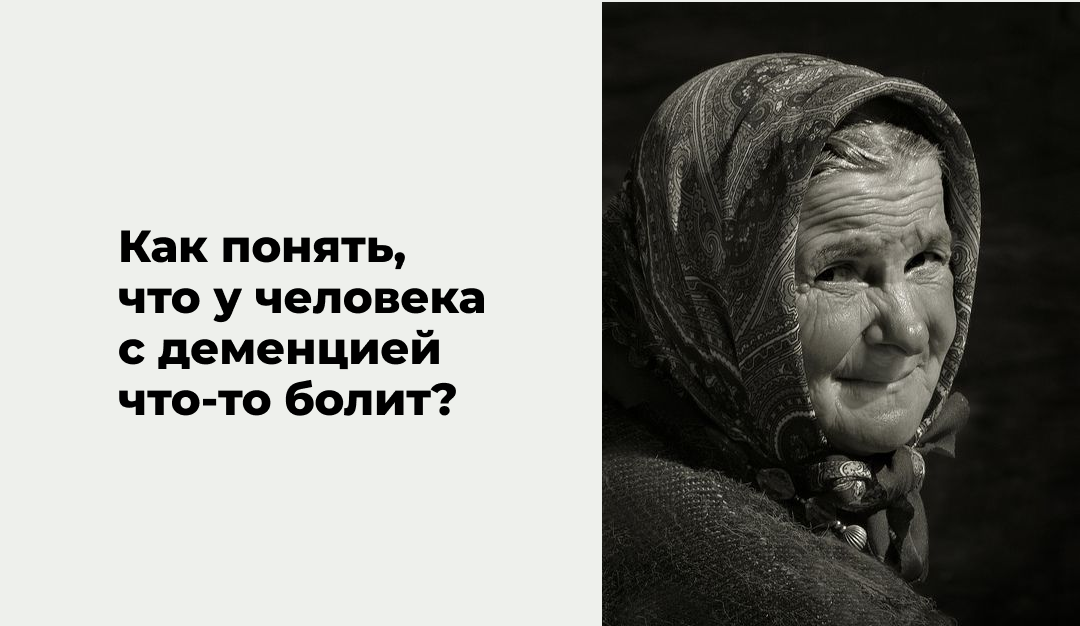 Когда у человека деменция, становится невозможно понять, что у него что-то болит. Здоровый человек может выразить боль через слова, какие-то эмоции. Человек с деменцией не умеет этого делать, представьте, что вы забыли, как это - говорить о своих чувствах. Деменция - это нейропсихиатрический синдром, в основе которого лежит приобретенное, длительное (более 6 мес.), прогрессирующее нарушение когнитивных функций головного мозга - мышления, внимания, памяти, речи, восприятия окружающей действительности, целенаправленной двигательной активности, ориентации в пространстве, узнавания времени и места. Что может болеть у людей с деменцией? Как узнать, что болит у пожилого человека с деменцией? 1) Спросить, если у вас есть контакт с близким человеком 2) Подумать, какие заболевания могут вызвать боли 3) Обратить пристальное внимание на поведение пожилого человека 4) Попробовать дать обезболивающее - посмотреть, прошла ли боль Случай из пансионата Один раз наша подопечная очень странно себя вел