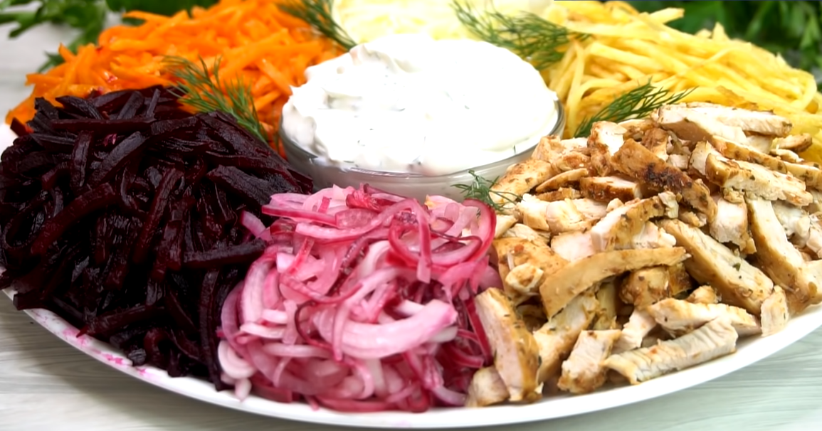 Сегодня хочу поделиться с Вами рецептом салата на праздничный стол. Салат «Чафан». Такой салат однозначно будет украшением праздничного стола. Удобен тем, что имеет множество вариаций, гости могут брать себе все или только определенные компоненты и смешивать с соусом или можно все перемешать, кога все гости уже за столом. Рецепт: