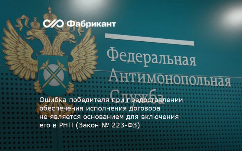 Ошибка победителя при предоставлении обеспечения исполнения договора не является основанием для включения его в РНП (Закон № 223-ФЗ)