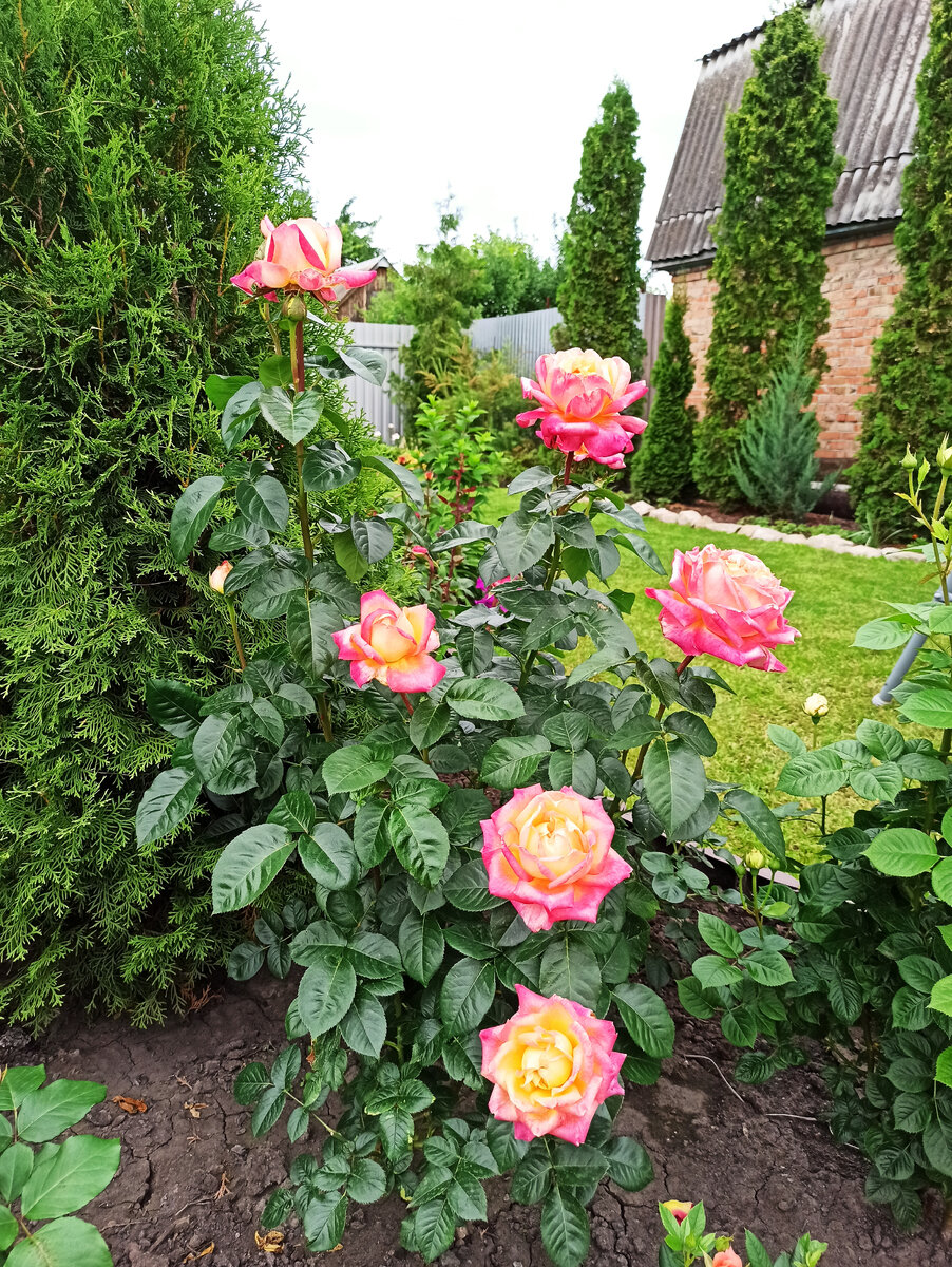 Добрый день, дорогие гости моего канала! Этот чайногибридный сорт американской селекции, 2001г. часто встречается в наших садах и для многих является любимчиком. Эта роза привлекает своим ярким, неповторимым окрасом, неприхотливостью и обильным цветением. У меня в саду Восточный Экспресс растет с весны 2019г., в первый же год показал свою мощь, нарастив к осени приличный кустик. Сорт является сильнорослым, образует прямостоящий куст с толстыми, крепкими побегами. Имеет очень красивые темно-зеленые глянцевые листья. Цветы многочисленные, крупные, до 12-14 см, очень яркой желто-малиновой окраски. Устойчивость к дождю и болезням хорошая. Очень быстро наращивает побеги после обрезки, поэтому успевает дать 3 волны цветения, уходя под зиму всегда с цветами. Однозначно рекомендую этот сорт любителям чайногибридных роз, особенно новичкам-розоводам. Все представленные фото – из моего сада. Спасибо за внимание! Если понравилось-не забываем ставить лайк и подписываться!