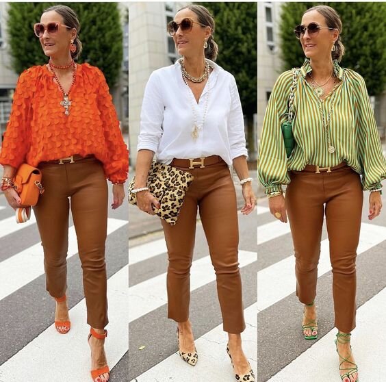Чтобы выглядеть каждый день по-разному при ограниченном количестве вещей, нужно придерживаться одного простого правила: на один вариант «низа» должно приходиться 5-6 вариантов «верха». Другими словами, если вы будете носить одни и те же брюки, но менять кофточки, то окружающим будет казаться, что у вас очень большой гардероб. Давайте убедимся в этом на конкретных примерах.