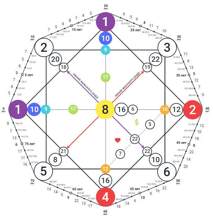 Чтоб рассчитать свою матрицу достаточно знать только дату рождения , в результате просчета, путем сложения получаем такую карту 👇🏻👇🏻👇🏻 Еще ее называют октограммой, что являет собой гармоничную связь духа с материей. Чтобы понять, какие энергии есть в вашей матрице, можно сделать рассчёт на калькуляторе. Для меня самые удобные эти 👇🏻👇🏻👇🏻