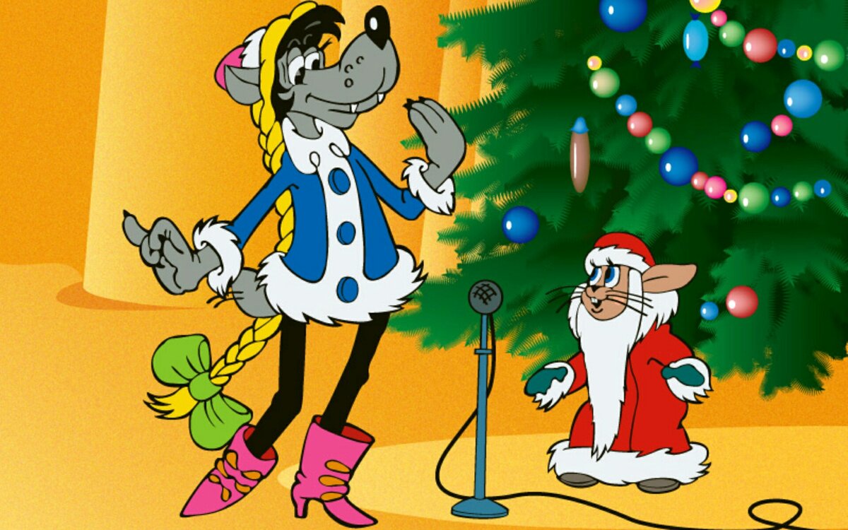 И куда же без всеми любимого «Ну, погоди!»? Животные веселятся на новогоднем празднике, катаются на санках, зовут Деда Мороза и Снегурочку. И наша неразлучная парочка везде тоже успевает. Признавайтесь, кто пел в детстве голосами Волка и Зайца песню «Расскажи, Снегурочка, где была?». Кстати, символ 2023 года — Кролик или Заяц, может, нашему ушастому герою повезет, и они с Серым наконец-то подружатся?
