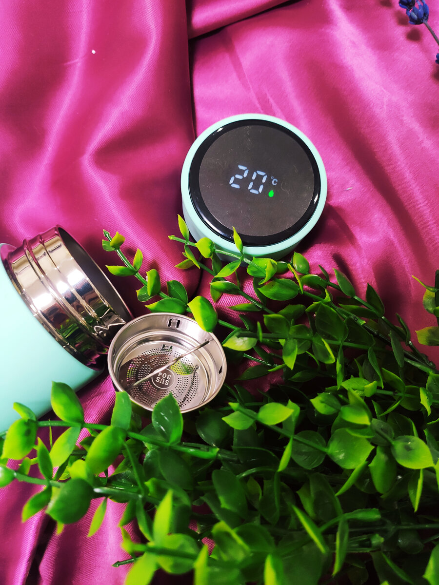 🌿 Приобрела себе термокружку от aciess Давно хотела купить с датчиком температуры, и вот к новому году сделала подарок. Отдала за нее около 13 бел. руб (400 росс. руб,). Такую цену можно получить, написав производителю в инстаграм. Совершила покупку на WB. Выбор цветов можно найти у данной модели кружки: бирюзовый, розовый, синий и чёрный. Термокружка приходит упакованной в картонную коробку. Открыв коробочку видим полиэтиленовый пакетик внутри которого кружка и бумажная инструкция. Термокружку нельзя мыть в посудомоечной машине. Цвет корпуса насыщенный, приятный, смотрится стильно и дорого. Она на ощупь матовая и очень удобно держать в руках. Крышка плотно закручивается и легко откручивается, ничего не протекает. Внутри нету ржавчины, сколов и других дефектов. Термокружка идёт в комплекте с ситечком. Люблю заваривать рассыпчатый чай и благодаря ему будет очень удобно делать это сразу в термокружке, а не использовать другую ёмкость. Время будет точно сэкономлено. Сейчас бол