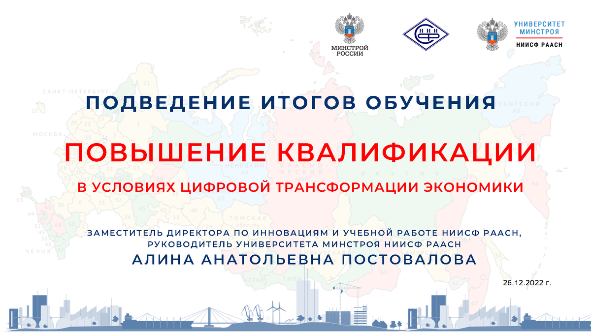 Мероприятие проходит в рамках курсов повышения квалификации "Осуществление функций государственного заказчика при реализации инвестиционно-строительных проектов с использованием технологий информационного моделирования" и «Управление службой технического заказчика при осуществлении государственных контрактов в условиях цифровой трансформации»