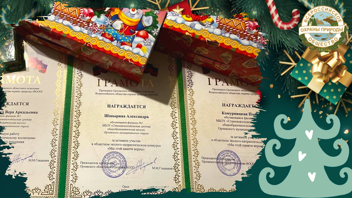Победителям и лауреатам эколого-патриотического конкурса Орловской области вручили дипломы и подарки ВООП