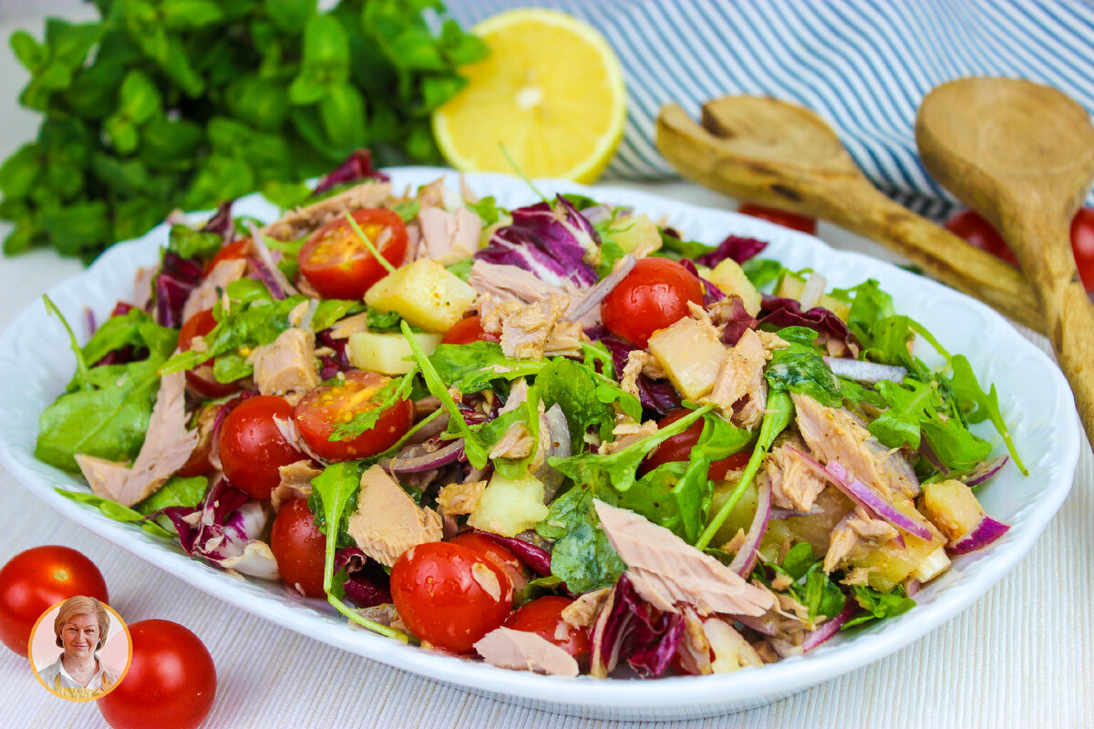 Рецепт очень простой, такой салат с тунцом можно приготовить в любое время года на праздник и на каждый день. Все ингредиенты прекрасно сочетаются между собой. Салат получается свежий, сочный и довольно сытный благодаря тунцу и картофелю, но в тоже время лёгкий и оригинальный на вкус. Рекомендую приготовить и попробовать. Задавайте вопросы в комментариях, оставляйте свои отзывы о рецепте, буду очень рада на них ответить!