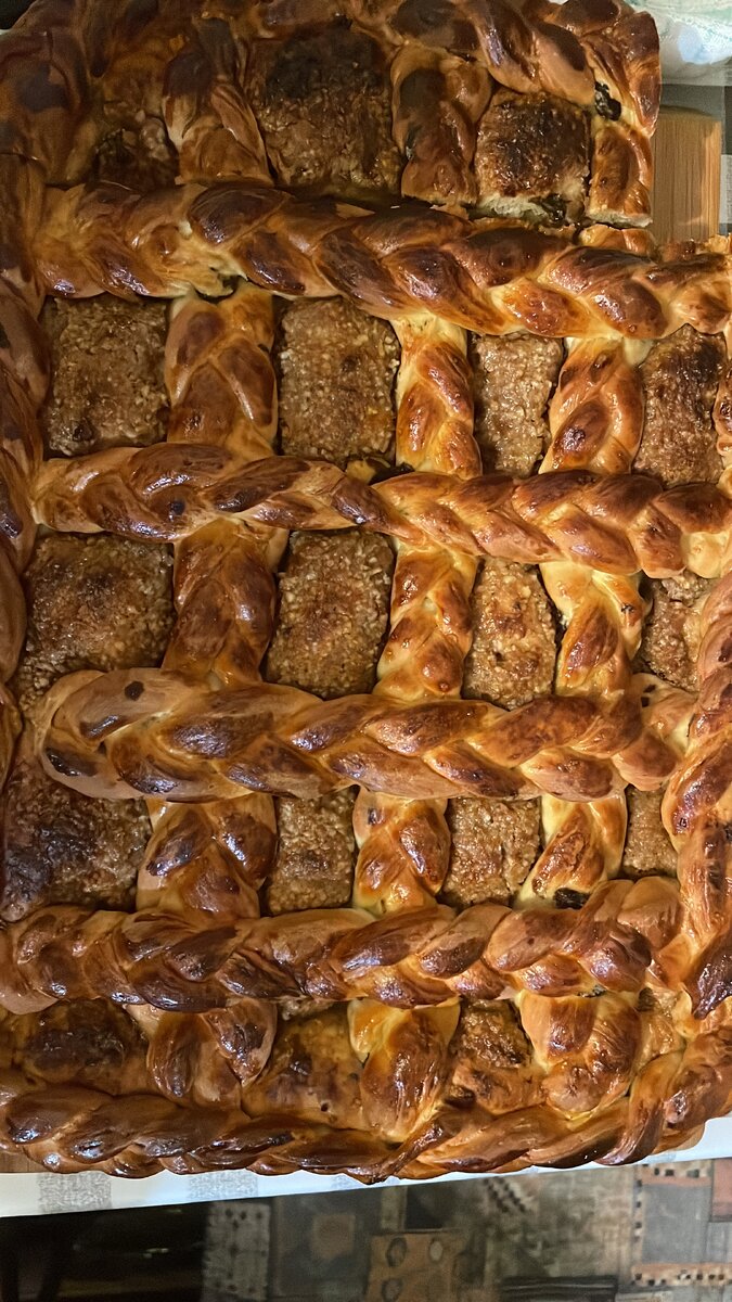 В моей юности было принято всем помогать на больших мероприятиях. И мы, молодые девочки ,старались активно принимать участие в подготовке этих мероприятий. В зону моей ответственности входило приготовление пирогов в количестве 20 штук. И я с радостью и с энтузиазмом включалась в процесс приготовления. Но по привычке , не могу готовить для маленькой семьи. Пирог с орехами и джемом. Ингредиенты : 1 ,5 стакан молока, 4 яйца, 0,5 стакана сахара, 20 грамм дрожжей, 3 стакана муки, 100 грамм маргарина, 30-40 граммов изюма, 1 стакан грецких орехов , джем или повидло абрикосовое по вкусу. Процесс приготовления : Для начала растапливаем маргарин и добавляем предварительно помытый изюм. Обжариваем до тех пор, пока изюминки не вздуются. Затем, в теплое молоко высыпаем сахар, дрожжи, добавляем 3 яйца и слегка мешаем. Оставляем на пару минут пока не появится легкая пенка. Далее выливаем маргарин с изюмом в опару, высыпаем муку и замешивание негустое тесто, оно должно отлипать от рук. Оставляе