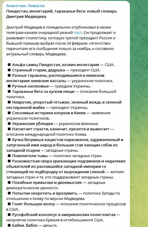 Вот словарь "публицистики" Медведева, который он использует, подписывая ЭТО собственной фамилией.