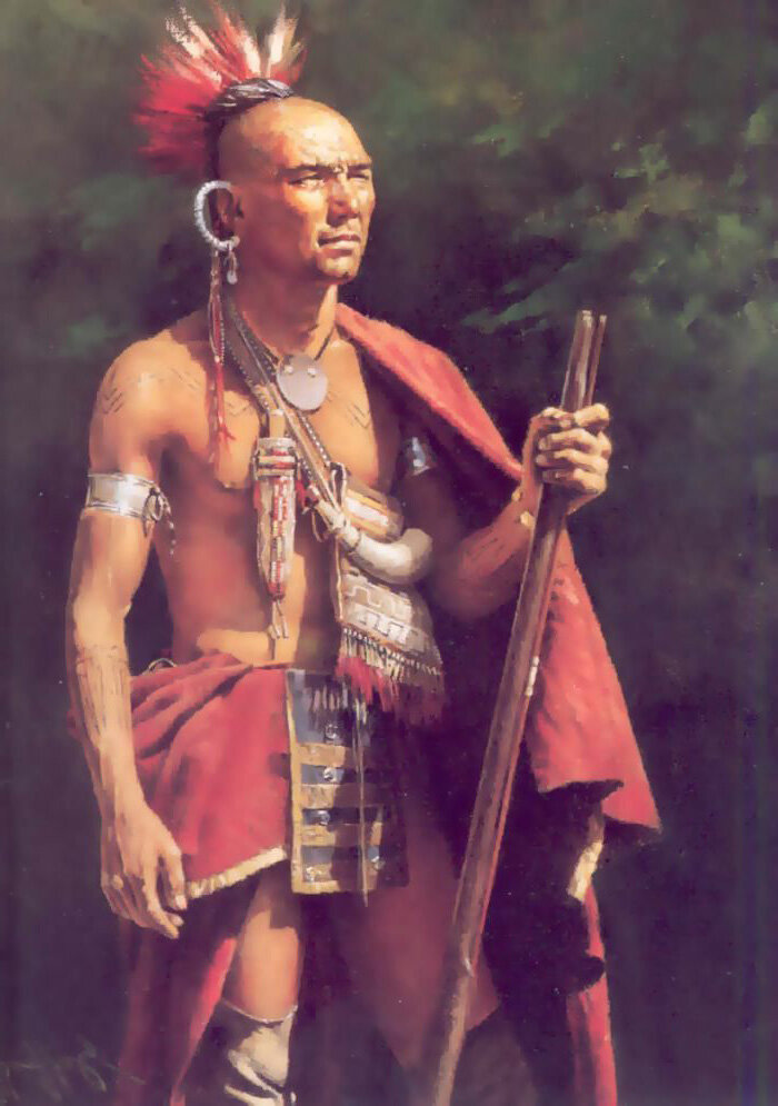Представители племени ирокезов, сами себя так не называли. Такое название дали им соседние, враждебные ирокезам алгонкинские племена, что означало - «гадюки». Самоназвание-же их «ходеношони», что переводится, как – «люди длинного дома». Ирокезы это не одно племя, а конфедерация шести союзных племён, таких, как: «мохоки», «онондага», «кайюга», «онейда», «сенека» и «тускарора». Изначально союз был создан в 1570г. из 5 племён, но впоследствии в 1722г. было принято племя «тускарора», изгнанное со своих земель на юге. Жилища их представляли собой большие, вытянутые постройки из стволов деревьев, связанных между собой верёвками и покрытых корой вяза, которая укладывалась, наподобие черепицы. Этакие лесные «общежития», средние размеры которого были в районе 25 м. на 5,5 м. и вмещали в себя от 20 и более семей. Вокруг индейская деревня огораживалась частоколом, высотой от 4,5 м. до 5 м. Кстати, всем известную причёску «ирокез» носили не все индейцы из «Союза Шести Племён», а только - «мохоки