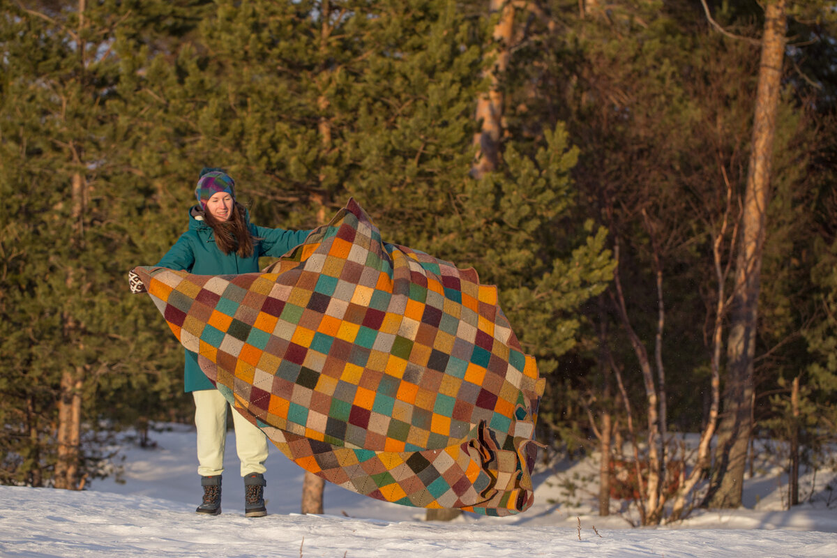 Здравствуйте, уважаемые читатели! Знаю, что многие из вас приходят сюда за красотой и вдохновением, поэтому сегодня хочу показать и рассказать, каким был мой творческий год. Для меня самой это тоже важно и интересно, ведь в 2021-м я почти весь год вязала один-единственный плед, который казался мне бесконечным, да сшила пару заячьих семейств, а в 2022-м мне уже есть чем поделиться. Год начался с пледа. Весенний плед я вязала с января по март и это был мой самый большой проект в 2022-м году. К тому же, весьма скоростной. Меня однажды спросили "А сколько ЛЕТ Вы его вязали?", я призналась, что три месяца. Но могла бы и за два. Он стал своеобразным вызовом самой себе, потому что я намеренно взяла для пледа совершенно непривычные мне цвета, много думала, сомневалась, чуть-чуть даже погрустила, когда картинка не складывалась, но с вашей поддержкой всё сложилось и Весенний плед оказался красавчиком, я считаю. Вдоволь натрепавшись на ветру беломорского побережья на съёмках, он отправился на юг