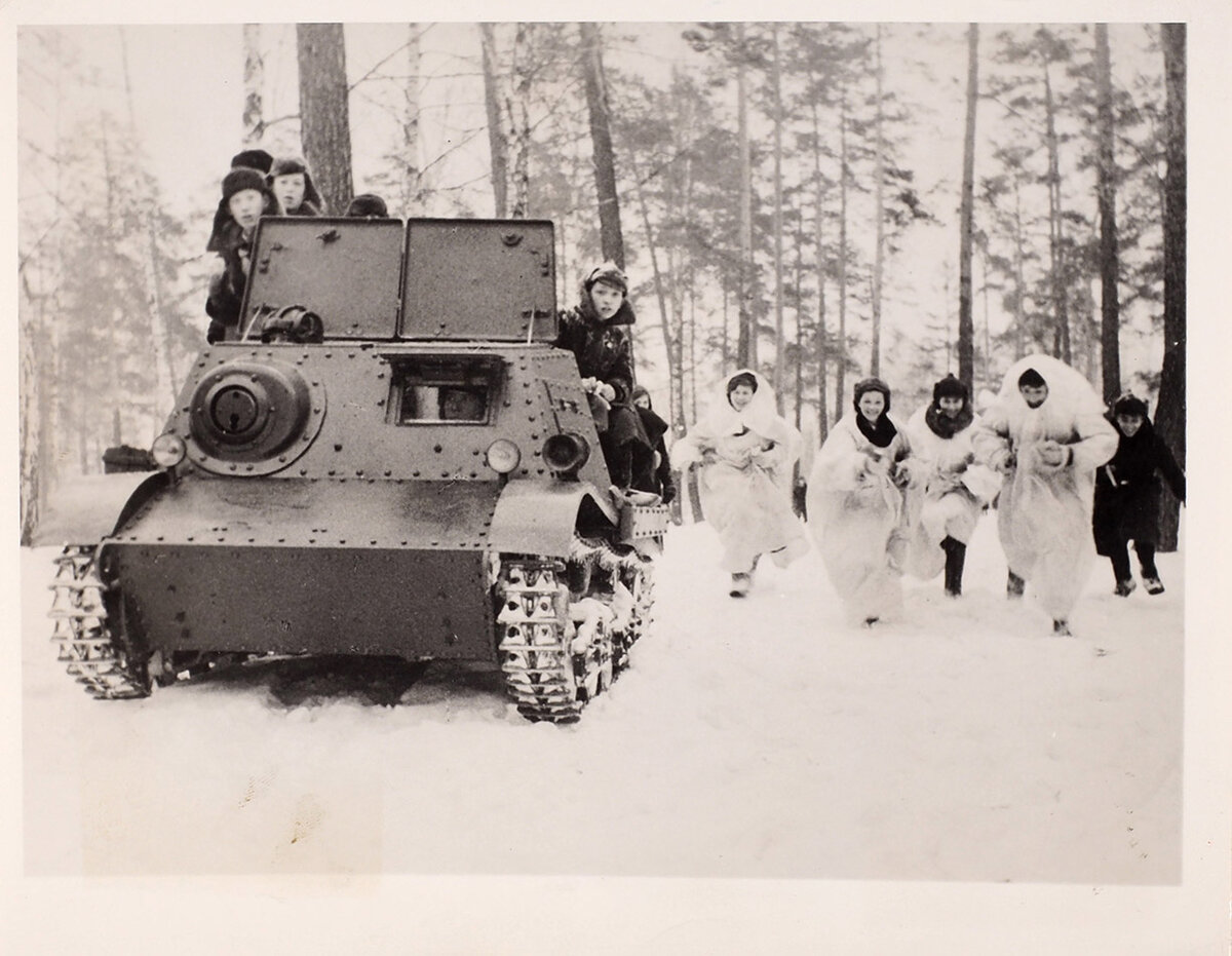 - Ничего себе в «Зарницу» поиграли, - подумалось, когда я первый раз увидел эту фотографию, на которой мальчишки в маскхалатах и просто зимней одежде бегут «в атаку». А вместе с ними «в атаку» идет тягач «Комсомолец» с «танковым десантом». Вот это я понимаю военная игра, максимально приближенная к реальности.
