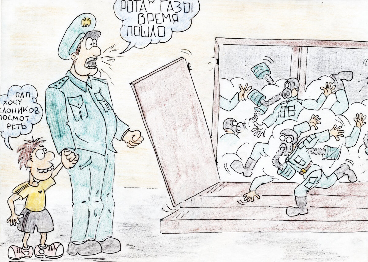 Он такой наглости не ожидал — отпустил меня. А вот в понедельник ротный обо всем узнал, и наша рота бегала в ОЗК по плацу целый час. Дембелям было интересно — что же случилось и из-за чего рота бегала. Меня позвали. Спросили. Я не скрывал. Ответил, как было. Они мне: «Фото есть?»