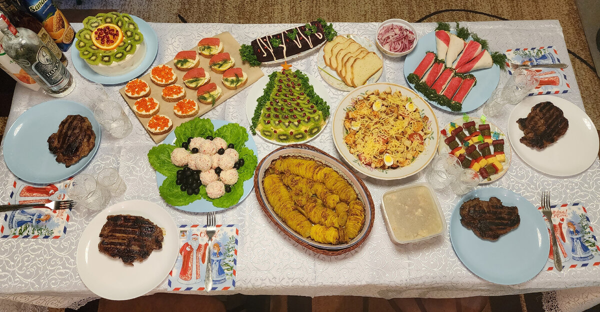 Девушка брата впервые встречала с нами Новый год, она была потрясена подготовкой блюд к подаче. Всё сфотографировала, сказала, что маме покажет :)