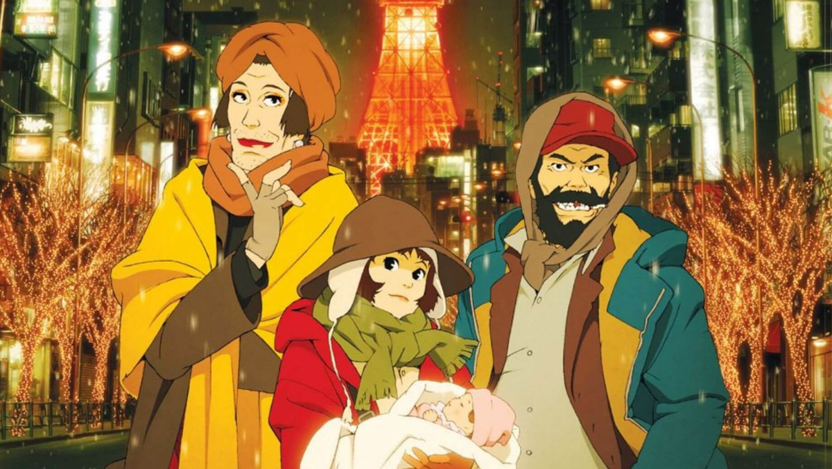 Приветствую читателей. Уже совсем скоро Новый Год, а это значит что пришло время пересматривать всеми нами любимые новогодние и рождественские фильмы. Аниме не балует этой тематикой, разве что в отдельных сериалах есть специальные рождественские эпизоды, однако есть одно очень яркое исключение. Сегодня бы я хотел рассказать вам о фильме, что рассказывает невероятную рождественскую сказку и дарит новогоднее настроение. Однажды в Токио / Tokyo Godfathers История разворачивается вокруг трёх бездомных Хана, Гина и Миюки, что волею судьбы оказались на улице, но вместе им удаётся вполне беззаботно жить. В канун Рождества герои на помойке ищут различные вещи, что сгодятся за подарки, но их прерывает пронзительный детский плач, что исходит от брошенного ребёнка. Обнаружив дитя, у Ханы, под влиянием материнского инстинкта, зарождается идея найти родителей ребёнка и потребовать объяснений, вместо того, чтобы просто отнести его в полицейский участок. И хоть остальные не сразу согласились на это