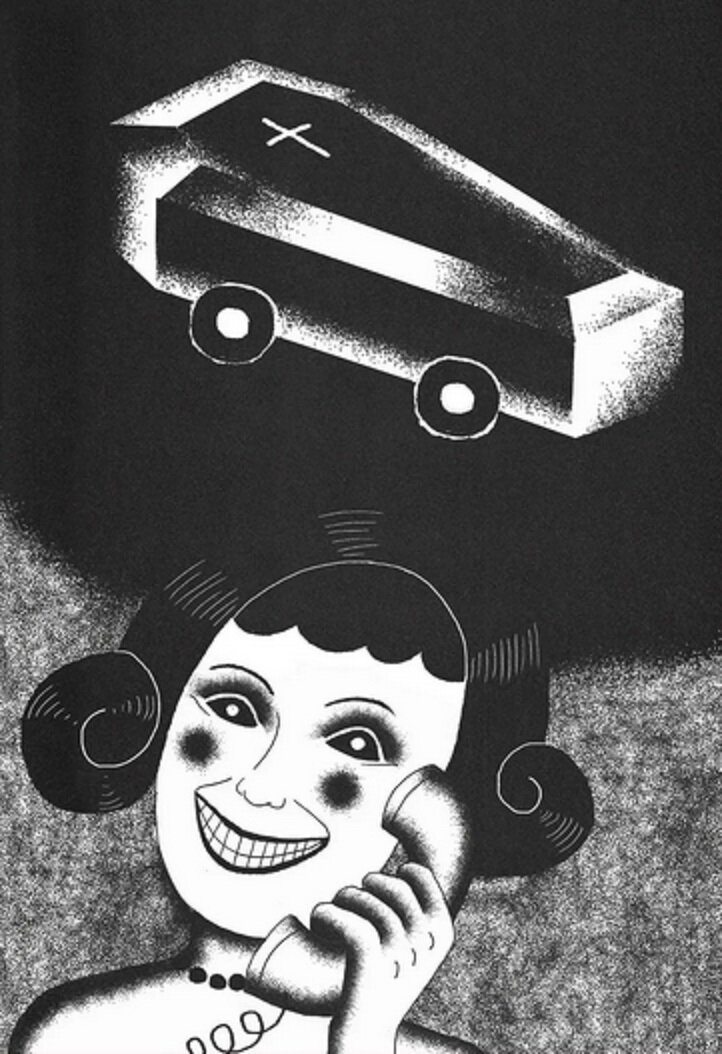 Империя советская – завоёвана ж была Украина в итоге, мол, Советской Россией (за три месяца до провозглашения СССР в Польшу ушел один из последних повстанческих командиров Я. Гольчевский) – вышучена трудно угадываемой карикатурой на завоевателя. Именно? – Мотивом «гроб на колёсиках» – это всеми забытая серия советских страшилок. Не страшно, мол (15.06.14), что нависает за восставшими на Донбассе Россия, как и с Крымом было. Раз. Рваным ритмом. Два. Вот первое четверостишие:
