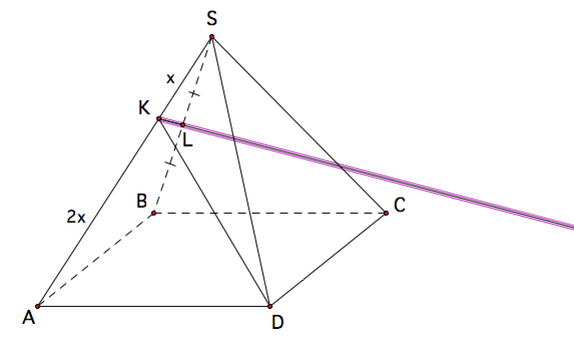ребра SB. На ребре SA взята точка К так, что SK:KА=1:2.
