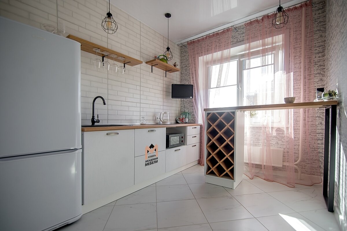 Установили кухню на Садовой, 50. Отсутствие верхнего яруса гарнитура отлично вписывается и в современный минимализм, и в элегантную классику, и в уютный прованс. И, если раньше кухня без верхних шкафов считалась неполноценным проектом, напрочь лишенным практичности, то сегодня это модный дизайнерский тренд, позволяющий отойти от привычных оформительских шаблонов и сделать что-то уникальное, свежее и красивое. Во многих случаях такая кухня бывает гораздо удобнее вариантов с подвесными конструкциями, а разгрузка интерьера позволяет полностью изменить эстетические акценты в комнате. Главное — все продумать до мелочей. Именно такую кухню, лёгкую и стильную, создавала команда мастеров "Академии Мебели" в своём очередном проекте. Минималистичная, достаточно аскетичная, современная, где есть необходимый простор и нет ничего лишнего. Доминирующий цвет — белый. Кухня линейная, её размер составляет 2300 мм. Выполнена она из изящных современных материалов: корпус – из ЛДСП "Белый шагрень"; фасады