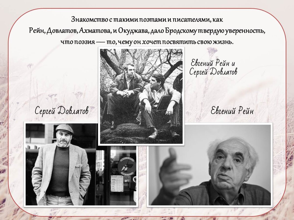 Рейн вспоминает, что Сергей был самым литературным человеком из всех сотен литераторов, что довелось ему повстречать в жизни. Он мог часами говорить о литературе. Литературный спор мог довести его до отчаяния. Он свободно цитировал Чехова, Зощенко, Платонова. Он знал и любил новую американскую литературу. Он разбирался в стихах, отличая модное от истинного, вычурное от подлинного.