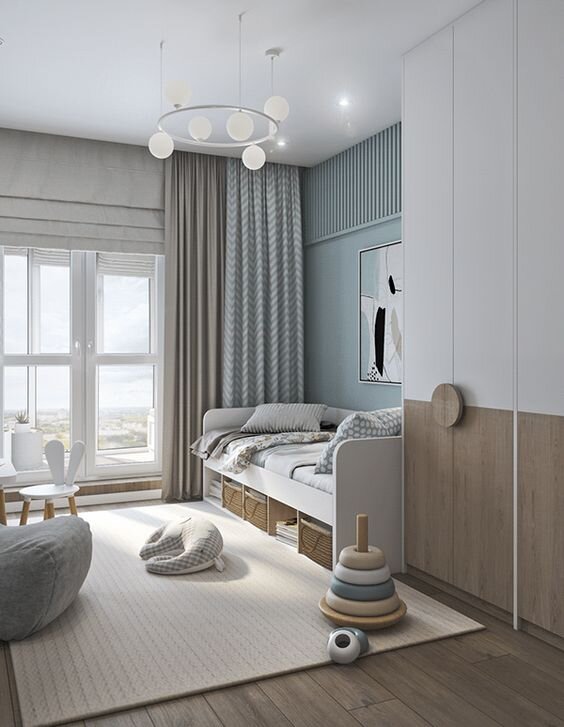 Воплощение интересной и стильной комнаты для мальчика основывается в первую очередь на возрасте ребенка. То, что будет уместно в 3 года, совсем не подойдет ребенку школьнику, и наоборот. Поэтому рассмотрим какие основные моменты должны быть учтены для каждого детского возраста. 0-3 года Интерьер детской должен нравится самим родителям, потому что ребенок еще только начинает формировать свой взгляд на вещи. Важно чтобы материалы отделки были натуральными и экологически чистыми. Цветовую гамму подбирают светлую нейтральную с некоторыми яркими акцентами и элементами, чтобы малышу было интересно исследовать комнату. 4-6 лет Дошкольный возраст характеризуется повышенной активностью, любознательностью. Так как мальчишки большую часть времени играют на полу важно положить гладкое, но не скользящее покрытие. Из современных материалов часто в детскую кладут мармолеум – натуральный износостойкий материал, который имеет большое разнообразие расцветок. Мебель в детскую лучше всего приобретать це
