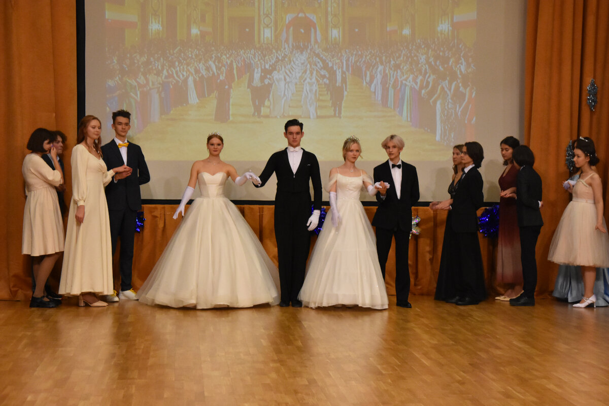 Бал – это всегда праздник. Яркий, красочный, искрящийся и весёлый. Но бал имеет богатую историю, и это не просто танцевальная вечеринка, а, прежде всего, церемония, где каждый демонстрирует окружающим и всему миру свою нравственность и культуру. В преддверии Нового года академические классы нашей школы и студенты московского университета спорта и туризма смогли сами узнать, что же такое настоящий бал! В этот вечер ребята вышли из привычных образов, чтобы максимально соответствовать бальному этикету эпохи XVIII-XIX веков. Наряды, программа представления и музыкальное сопровождение были составлены с учетом исторических балов. Дух истинного бала воцарился в зале сразу после торжественного выхода пар. Дамы были одеты в изысканные платья, а кавалеры предстали в элегантных фраках и костюмах. Когда же вышли ведущие Виктория Букреева, Кирилл Ситников и Елизавета Шичкина, то все присутствующие просто онемели от восторга - настолько восхитительными были их наряды! Право открыть бал было предоста