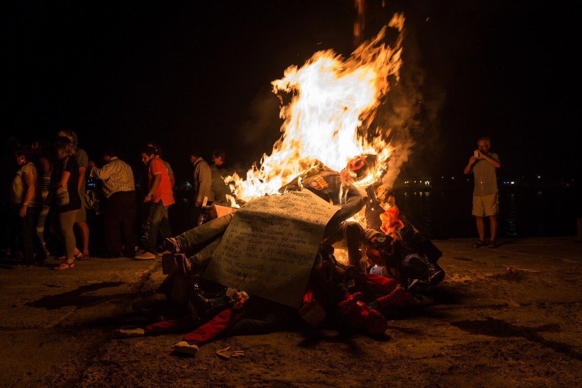 Добрый день уважаемые читатели. Не ошибусь, если скажу, что вряд ли кто-то из вас хотел, чтобы его чучело сожгли. Уж я-то точно не хотел бы, что бы кто-то сжег мое чучело. Это понятно когда жгут чучело на Масленицу. Это символически. Но вот чучело живого человека? Это не очень понятно мне, однако в Перу такая традиция существует. На Новый Год там жгут чучела изображающие президента страны или других знаменитых в Панаме личностей. Признаюсь честно – для меня лично это своеобразная, странная традиция. Как готовятся в Панаме к празднованию нового года? Жители Панамы готовится к Новому Году заранее. Им нужно подготовить к этому времени много чучел. Это могут быть политики, знаменитые представители местного шоу-бизнеса и, в обязательном порядке, президент страны. Как выглядят чучела? Каждая семья делает чучела из подручных средств. Это может быть вата, солома или бумаги. Одевают чучела в старую одежду. Иногда вместо лица прикрепляют фотографию человека, которого оно должно изображать. Назыв