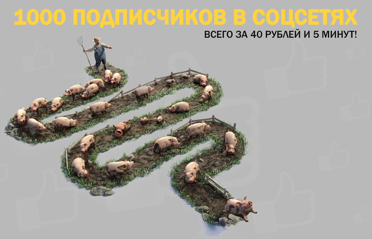 1000 подписчиков в соцсетях всего за 40 рублей и 5 минут!