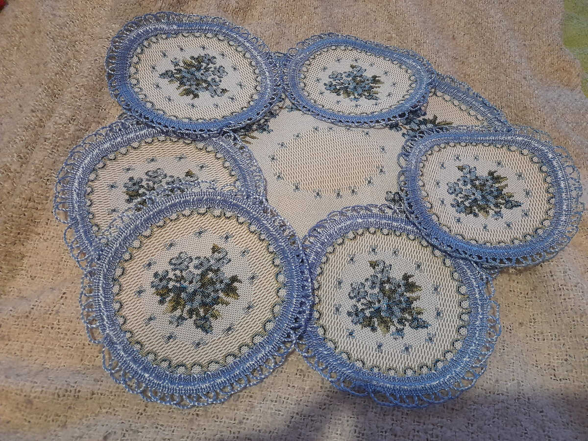 Прежде всего всем хейтерам просьба выйти. Будет статья не для ваших нежных глаз😄. Потому что я опять купила в секонде то, что мне нравится (правда, в этот раз совсем чуть-чуть). И делюсь праздничным настроением) Сначала салфеточки. У нас бывает такое - продаются наборы от местных умельцев. Прелесть какая! Я люблю все необычное, мимишное и мультяшное как в одежде и аксессуарах, так и в посуде и товарах для кухни. Недавно прикупила себе пару тарелочек в фикс прайсе с Алисой и чеширским котом и новогоднюю кружку с волками). Белые скучные тарелки это не для меня) Обязательное требование к посуде - узоры и рисунки. И салфетки подойдут как нельзя кстати. Они такие толстые и жёсткие из гобеленовой ткани. И сразу прям чувствуется винтаж и ретро. Чай с мятой, самоварчик на столе и все такое. Кстати я чай не пью в принципе как и кофе, вообще никакой. Максимум - сбор каких-нибудь трав или просто теплую воду. Не люблю чай и все тут) Обратная сторона салфеточек. Или подставочек - кому как нравится
