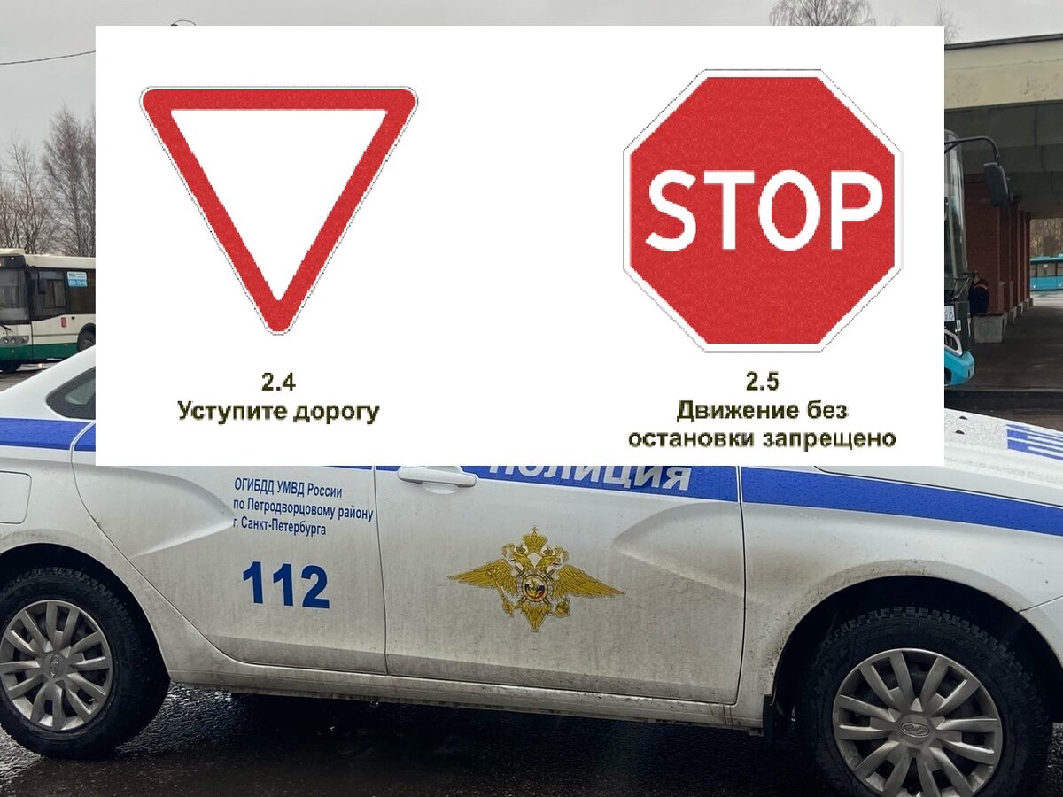 Отличие данных дорожных знаков в том, что согласно ГОСТа дорожный знак 2.5 "Движение без остановки запрещено" устанавливается на участке дорог с плохой видимостью и железнодорожных переездах, где заметить приближающийся транспорт без остановки очень сложно. А дорожный знак 2.4 "Уступи дорогу" устанавливается на любых участках дорог.