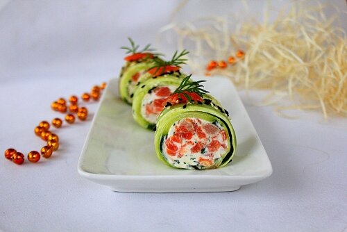 Огуречные роллы с красной рыбой на Новый год