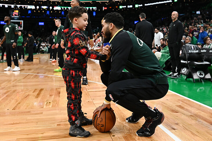 Любовь к сыну находит выражение и в экипировке Тейтума. Прозвище сына красуется на всех кроссовках игрока.