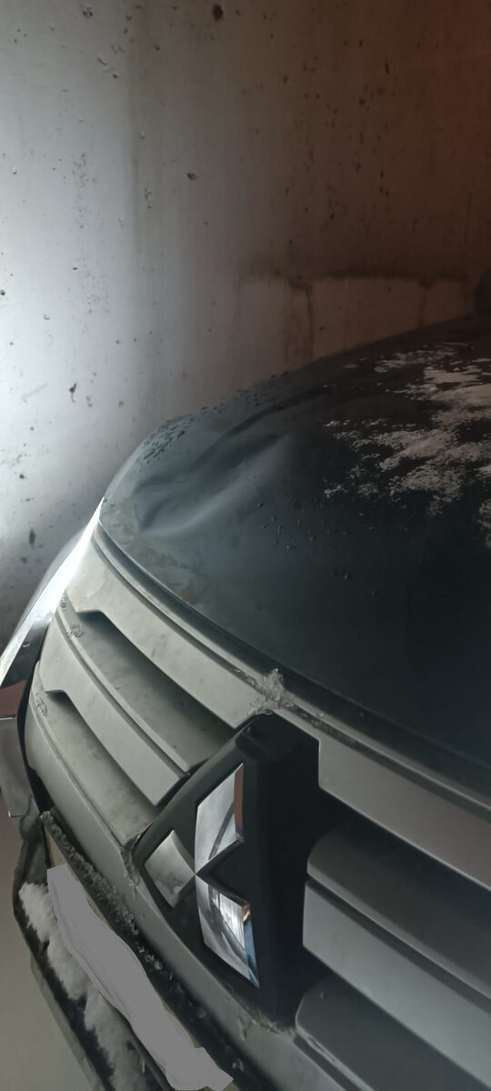 Вот такие снимки прислал нам владелец машины. Снег упал на капот Паджеро. Снег оставил крупную вмятину. Краска не пострадала. Судя по фото это "наш случай"!
