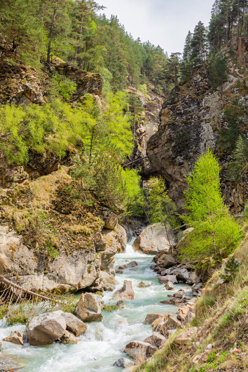 Если посмотреть в обратную сторону, то можно полюбоваться на ущелье с шумящей далеко внизу речкой.