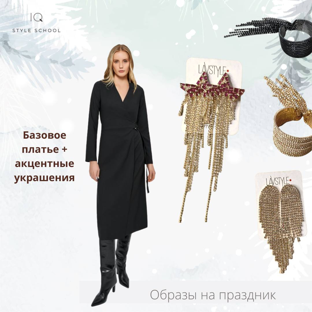 ✔️ Одним из вариантов новогоднего наряда может быть базовое чёрное платье.