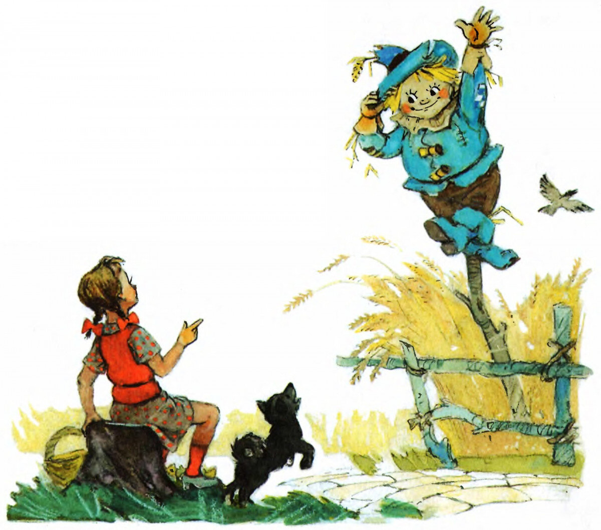 Голова Страшилы набита соломой, поэтому он хочет мозги. На протяжении всего путешествия Страшила придумывает как выйти из той или иной ситуации. Его смекалка и ум помогают спастись от Людоеда, саблезубых тигров, перебраться через реку и