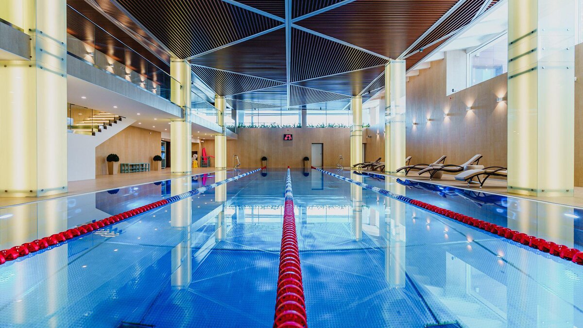 Бассейн длиной 23 метра включает четыре дорожки, а вода в нём проходит трёхступенчатую систему очистки. Здесь проводятся занятия по оздоровительному плаванию, аквааэробика, занятия с тренером по методике массажа в воде Ватсу, помогающие при самом широком спектре заболеваний, от рассеянного склероза и ревматизма до головных болей и бессонницы. Кроме того, в бассейне проходят групповые и индивидуальные занятия для беременных и восстановительная аквафизкультура после родов.