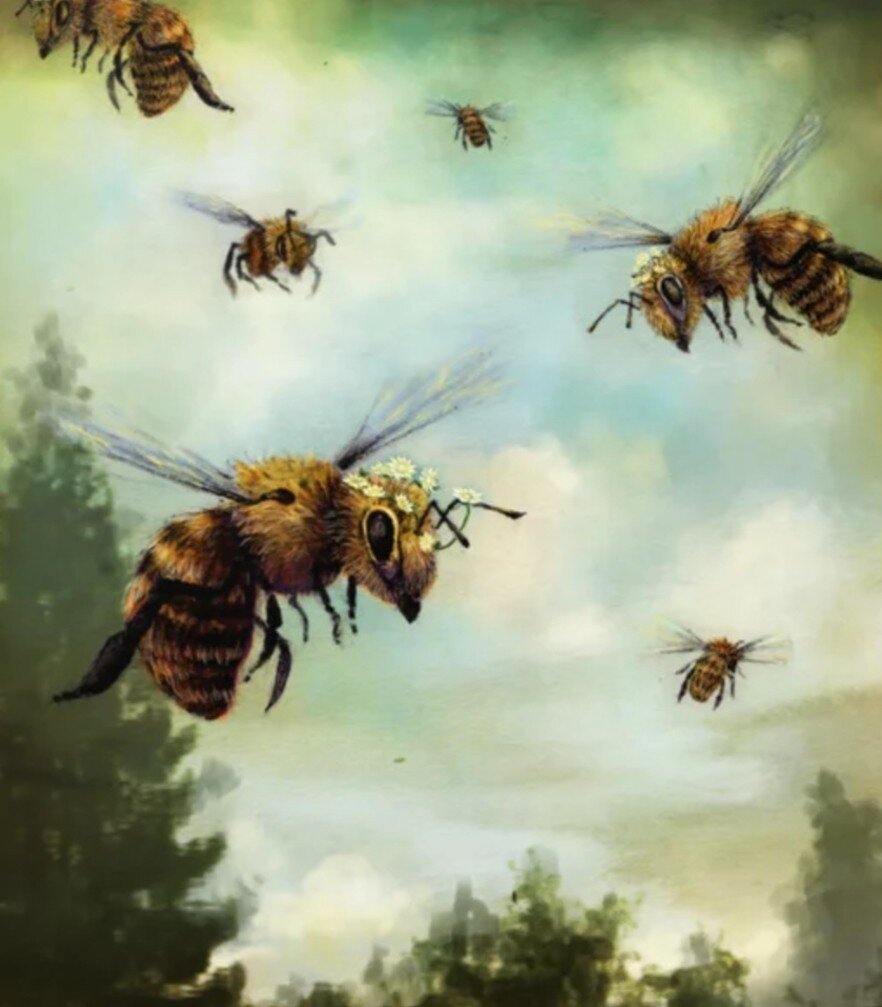 Иллюстрация - "Корона пчёл" принт на холсте от Рейчел Шенкман