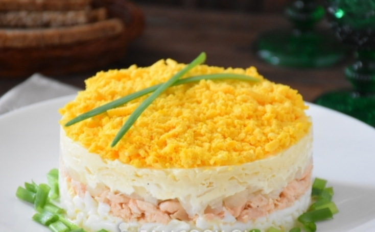 Этот салат один из самых любимых, напоминает Мимозу, но более воздушный и вкусный). В составе нет картошки и моркови.