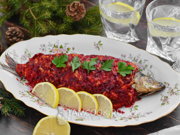 Селёдка под шубой, но не салат, а горячее блюдо. Интересно, необычно и очень вкусно! Рыбу для этого рецепта нужно взять свежемороженую, а не солёную. Запекать мы её будем в духовке вместе с шубкой. Подавать блюдо нужно в горячем виде, но и остывшая она тоже будет очень вкусной. Холодная сельдь под шубой будет напоминать рыбу под маринадом. Сельдь под шубой в духовке Свеклу лучше всего отварить заранее. А свежемороженую селёдку берите покрупнее. Предпочтительнее тихоокеанскую, так как она более жирная в сравнении с атлантической. 📝ПРИГОТОВЛЕНИЕ: 1. С селёдкой можно поступить двумя способами. Первый - разделать её на филе. Второй - разрезать вдоль хребта на две половинки, но голову оставить целой. После чего нужно удалить хребет с костями, которые увидите. При втором способе рыба будет смотреться намного интереснее. Но на вкус это никак не повлияет. Для маринада соедините горчицу, соевый соус и лимонный сок. Полейте нижнюю половину рыбы частью маринада и положите нарезанный лук. Смажь
