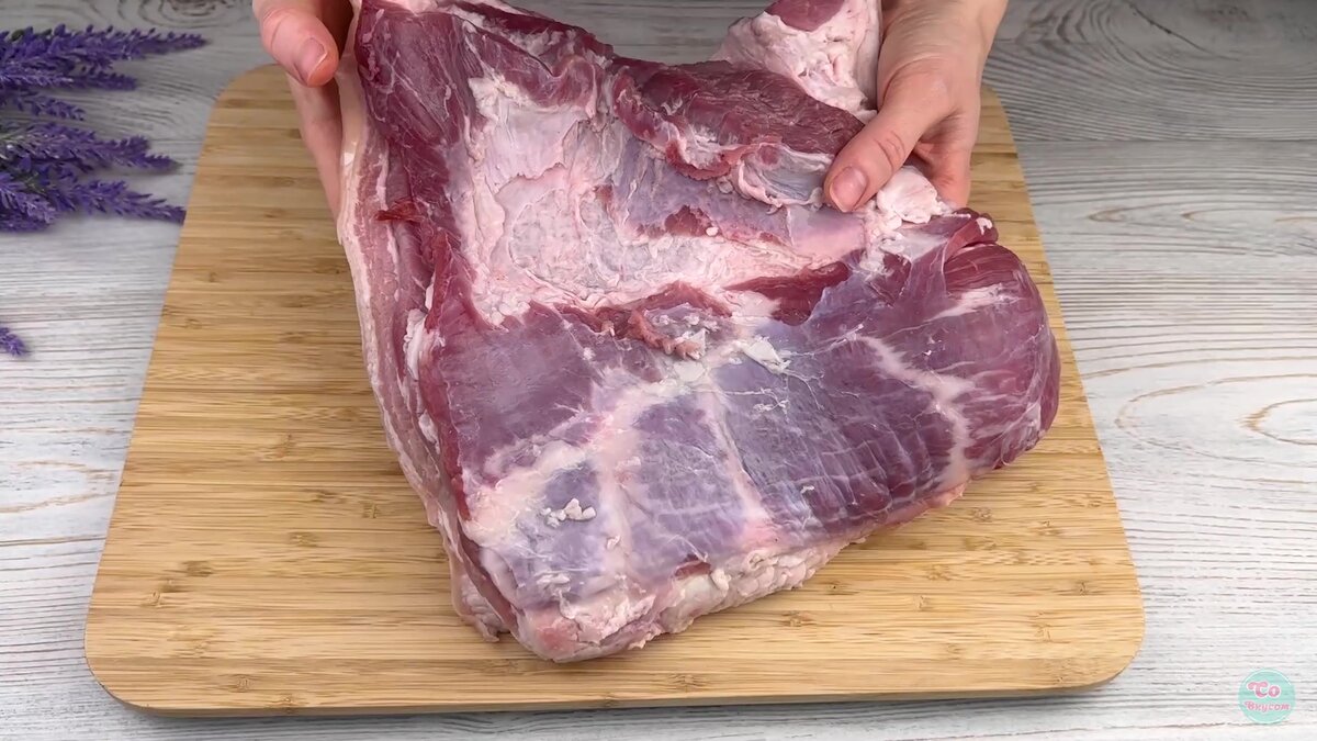 Рецепт домашнего БЕКОНА. Вы навсегда забудете о магазинном беконе, когда попробуете приготовить у себя дома. Великолепный вкус, который понравится всей семье. Термометр необходимо купить. Без него никак. Нитритная соль тоже нужна. У меня нитритная соль 0,6 %. Добавление нитритной соли позволяет сделать: • приятный и аппетитный цвет изделия; • продлевает срок годности; • не даёт развиться бактериям и инфекциям в мясе; • волокна мяса становятся более мягкими и нежными. Ингредиенты: Грудинка - 1кг 500 г. Соль поваренная - 30 г (2% от веса грудинки). Соль нитритная - 15 г (1 % от веса грудинки). Сахар - 15 г (1% от веса грудинки). Чёрный перец молотый - 2 ч.л. Сухая аджика - 3 ч.л. Мускатный орех молотый - 0,5 ч.л. Сухой тимьян (чабрец) молотый - 1 ч.л. Лавровый лист - 3 шт. Чеснок - 3 зубчика. Грудинка - 1кг 500 г. Промыть и обсушить бумажным полотенцем Старайтесь выбирать грудинку с меньшим количеством жира В миске смешать соль поваренную и соль нитритную, сахар, черный молотый перец, су