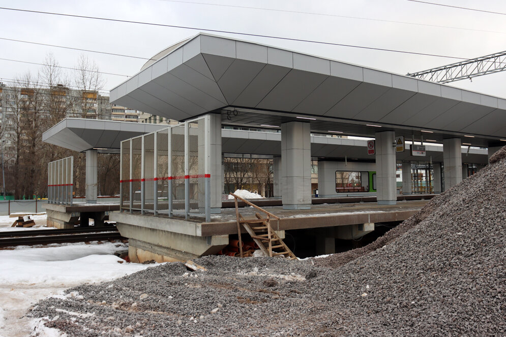 5. На заднем плане ведётся строительство кассового зала с блоком технических помещений. Возможно, что его откроют позже самой платформы, т.к. работы там ещё непочатый край. Впрочем, посмотрим.