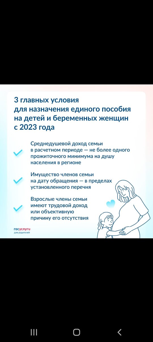 ✅ Проверьте, соблюдаются ли эти условия для вашей семьи. Если да, с января 2023 года можно подать заявление на единое пособие: ✔️ при беременности ✔️ на каждого ребенка до 17 лет #единое_пособие