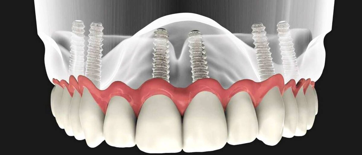 Чаще всего при отсутствии всех зубов в ряду применяют имплантацию по протоколу All-on-4 или All-on-6, которая предполагает установку 4 и 6 имплантов.