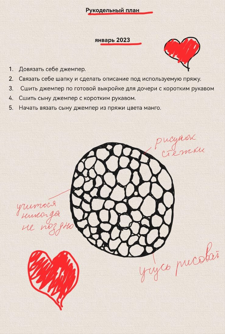 Не помню кто сказал, но сама мысль понравилась : "Если озвучить свои планы на месяц, то их обязательно нужно выполнить и волшебным образом они выполняются" Ну что же, теперь я озвучиваю свои планы на январь 2023 года. Итак начнём с эскиза шапки. Пока я осваиваю новую игрушку подаренную мужем к новому году, покажу что у меня получилось. Как вы могли догодаться, связана шапка будет из твидовой пряжи. Состав сейчас не вспомню, но напишу когда свяжу и буду показывать процесс. Пряжа бомбически мягкая и приятная. Джемпер для дочери, вариант с коротким рукавом для садика идеальный. Я уже шила такую футболку, она очень свободна и детям нравится. Ткань двунитка с начесом, 100% хлопок. Так как в ткани нет примесей в ней не жарко даже в наших душных садах. Выкройка готовая не требующая изменений и корректировок Сыну досталась ткань со скрипками, хотя мы не музыканты, но принт очень прикольный, (смотри фото ниже, справа) и готовимся мы уже к лету. Надеюсь оно будет. Так как нам худи, свитшо