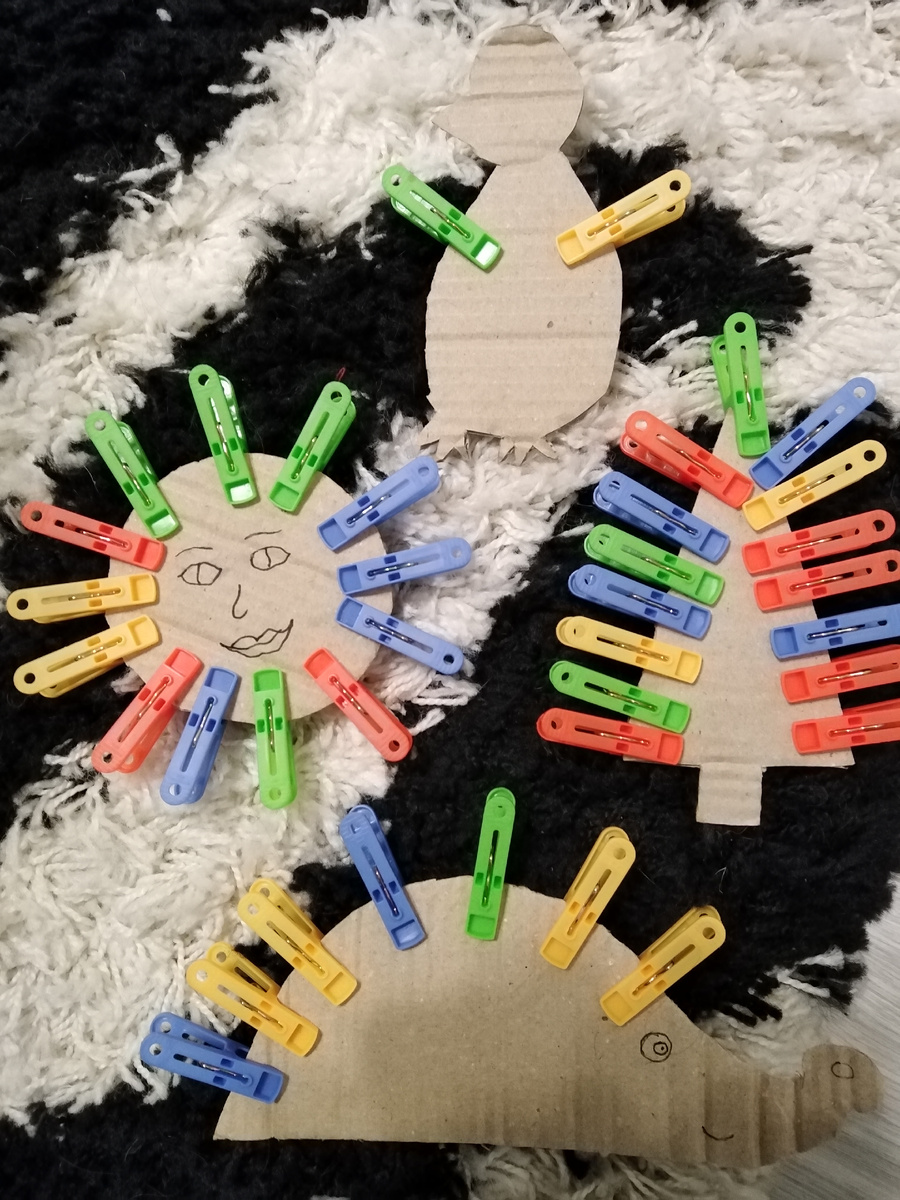 Доброго времени, многоуважаемые подписчики! Я рада видеть Вас на своей страничк. Спасиб, что зашли и решили почитать мою статью. В данной ставите я бы хотела поделиться с Вами одной замечательной идеей: как создать развлекательную игрушку для Вашего малыша из подручных материалов. Итак, нам понадобятся: Теперь приступим к созданию игры: выстрегаем из картона разные предметы, животных, кружочки (солнышко), рисуем им личико и выдаём ребёнку вместе с прищепками. Задача ребёнка- прикреплять прищепки на фигурки (получаются иголки для ёжики, лучики для солнышка, перышки для птички т. д). Достоинства игры: Интересно как совсем маленьким деткам, так и тем, кто постарше (моей два годика, обожает эту игру). Важно! Следите, чтобы малыш не совал прищепки в рот. Советую попробовать. Всем спасибо и хорошего дня 🙂