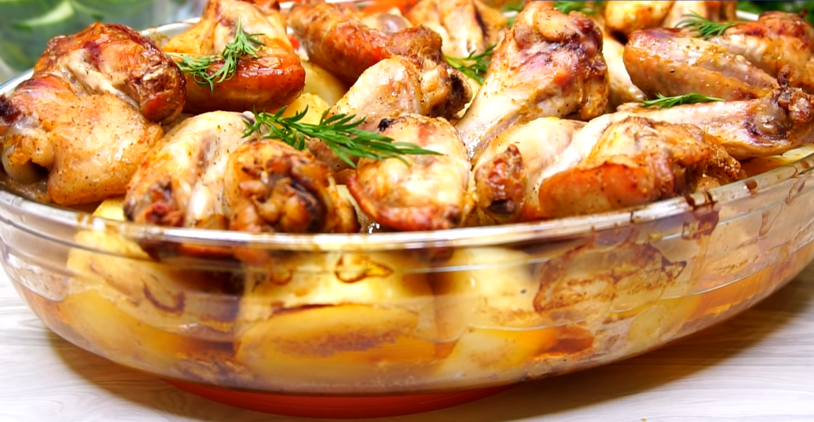 Сегодня хочу поделиться с Вами рецептом вкуснейшего обеда в духовке на каждый день. Обед в духовке картофель с куриными крылышками. Простая и вкусная еда для всей семьи. Крылышки получаются нежными, сочными, вкусными, картошечка - супер-вкусная. Считаю, что такое блюдо можно приготовить даже на любой праздник. Рецепт: