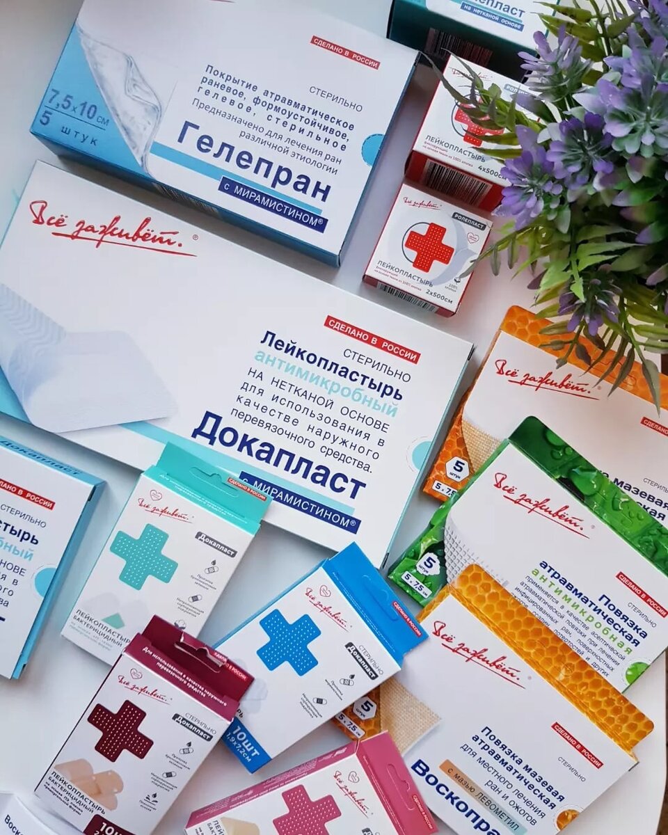 Российская компания «Биотекфарм» с 2000 года выпускает перевязочные материалы, пластыри, повязки для лечения ран под торговой маркой «Все заживет».