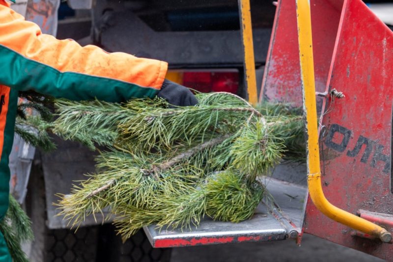 На мусорном полигоне ёлки будут измельчать при помощи дробильной машины. Полученной мульчей пересыпят полигон для сокращения площади захоронения отходов и ускорения процесса естественной переработки.