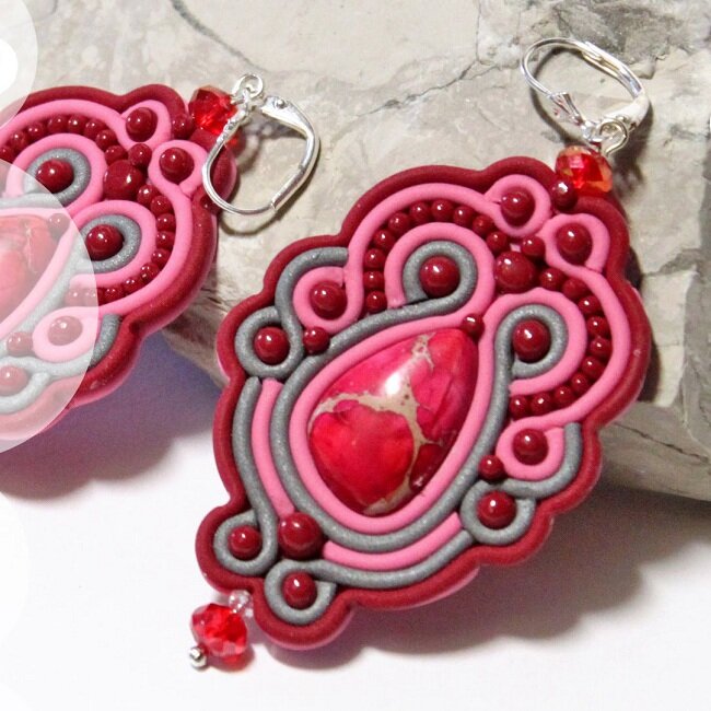 Серьги из полимерной глины в технике сутаж: